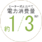 エコキュートは、電気温水器と比べて、電力消費量が約1/3になります。