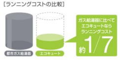 給湯にかかるランニングコストは、ガス給湯器(都市ガス)と比べて、月平均約1/7になります。