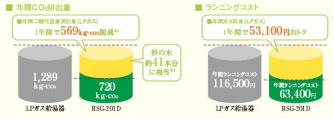 ガス給湯器だけよりも、燃料費が大幅に節約でき、温暖化の原因となるCO2も削減できます。
